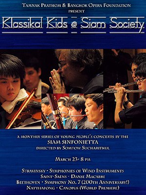 Thailand’s innovative youth symphony the SIAM SINFONIETTA under the baton of Silpathorn Kittikhun Artist Somtow Sucharitkul – brings the 200th Anniversary performance of Beethoven’s Seventh Symphony – one of the most popular and enduring works of classical music …. the scintillating “Danse Macabre” by Saint-Saëns … the world premiere of the interstellar composition “Canopus” by Natthapong Yutthanasirikul … and the winds of the Sinfonietta in an exciting performance of Stravinsky’s “Symphonies of Wind Instruments”… plus the Sinfonietta famous ‘Encores’