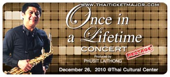 Once in a Lifetime Concert 500-2,000฿ Entertainment 1726 total views, 0 today Report problem Home Bangkok Events Entertainment Once in a Lifetime Concert This ad listing is expired. Photo Gallery Once in a Lifetime Concert × Additional InfoStreetRatchadaphisek RdBangkok RegionBangkokCountryThailandCityBangkokLocation/PlaceThailand Cultural CenterBTS MRTThailand Cultural CentreTelephone02 262 3456DateDecember 26, 2010Time7.00 P.M.PublicTicketsTV Thunder Green Entertainment & Toyota Present Once in a Lifetime Concert Produced by Phusit Laithong (Restage) Comments block-12 Ratchadaphisek Rd Bangkok Get Directions Share Ad BkkEventAdmin Listing Owner Member Since: October 16, 2010