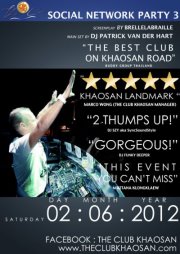 Social Network Party Bangkok Thailand Unknown฿ Networking 975 total views, 0 today Report problem Home Bangkok Events Networking Social Network Party Bangkok Thailand This ad listing is expired. Photo Gallery Social Network Party Bangkok Thailand × Additional InfoStreetKhaosan Rd.Bangkok RegionKhaosan RoadCountryThailandCityBangkokLocation/PlaceTHE CLUB KHAOSANZip/Postal Code10200BTS MRTNo StationTelephoneUnknownDate2 June 2012Time22:05PublicOpen PublicFacebookhttp://www.facebook.com/events/375557052492110/Social Network Party # 3 DJ PATRICK VAN DER HART DJ FUNKY DEEPER DJ ZAA BUZZ VJ BRELLELABRAILLE Comments block-12 Khaosan Rd. Bangkok 10200 Get Directions Share Ad BkkEventAdmin Listing Owner Member Since: October 16, 2010