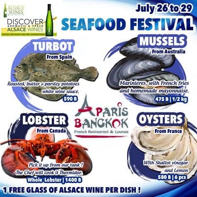 Special Seafood Lover Paris Bangkok Restaurant special price฿ Global cuisine 1047 total views, 0 today Report problem Home Bangkok Events Restaurants Global cuisine Special Seafood Lover Paris Bangkok Restaurant This ad listing is expired. Photo Gallery Special Seafood Lover Paris Bangkok Restaurant × Additional InfoStreetSilom RoadBangkok RegionSilom LineCountryThailandCityBangkokLocation/PlaceParis Bangkok RestaurantZip/Postal Code10500BTS MRTSala DaengTelephone022331990Date26-29 July, 2012Timeshow timeFacebookhttps://www.facebook.com/ParisBangkok?ref=streamSPECIAL SEAFOOD LOVER ! special FOCUS, Mussels, Oysters and more, 1 FREE ALSACE white wine per dish. Comments block-12 Silom Road Bangkok 10500 Get Directions Share Ad BkkEventAdmin Listing Owner Member Since: October 16, 2010