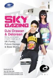 Bangkok’s no. 1 pre-party will be rocking this week with a power packed set from Sky Gazing! DJs Orawan & Delorean will be spinning a fresh mix of hip-hop, funk, and BASS that will have you jumping and fist pumping all night as you groove to their selction of choice cuts! Supporting Sky Gazing is Wet Entertainment’s DJ Honey G playing a blend of hot house tracks and party rocking hip-hop. Specially priced cocktails and drinks available all night!
