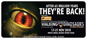 It’s a dazzling 10 million pound arena spectacle of unprecedented size and quality set to captivate young and old alike. Marvel at the story of their 200 million year domination of life on earth. Watch them walk. Hear the roar. Be there as they fight for survival and supremacy. From the ripple of their skin to the glint in their eye, you will know the dinosaurs really have returned! So make sure you have your seat to see the return of the dinosaurs!